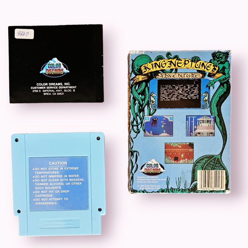 Most of the games cartridge's came in a baby blue color but like most other Color Dreams games it also came in black, the black being more uncommon than the baby blue variant.