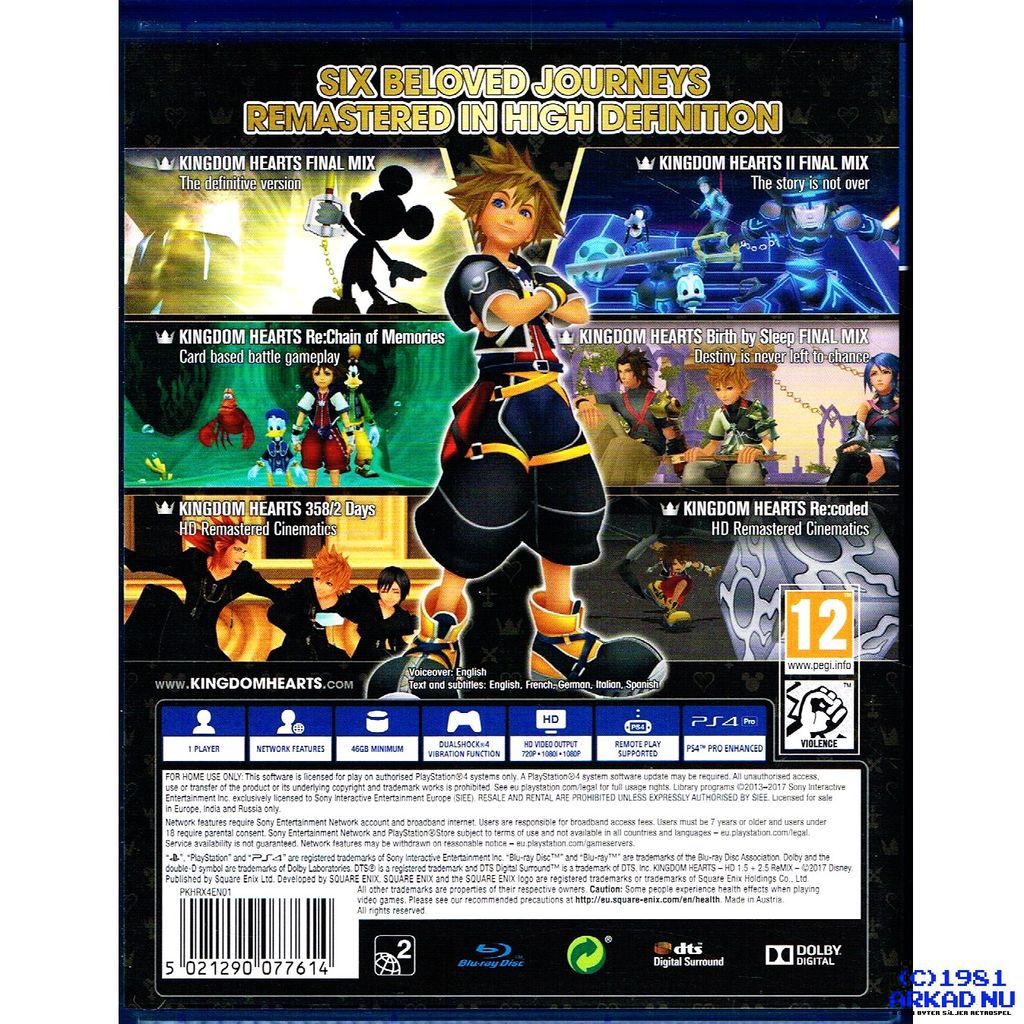 Upplev alla sex fantastiska spel och återupplev seriens ursprung med alla dina favorit Kingom Hearts karaktärer.