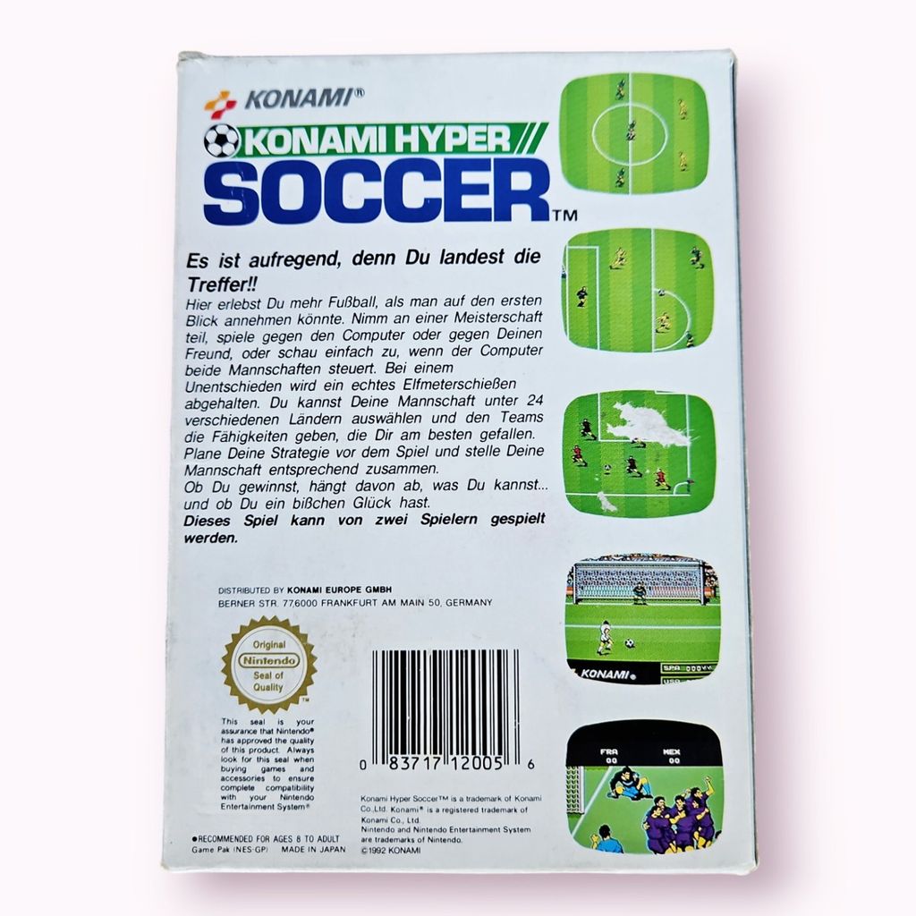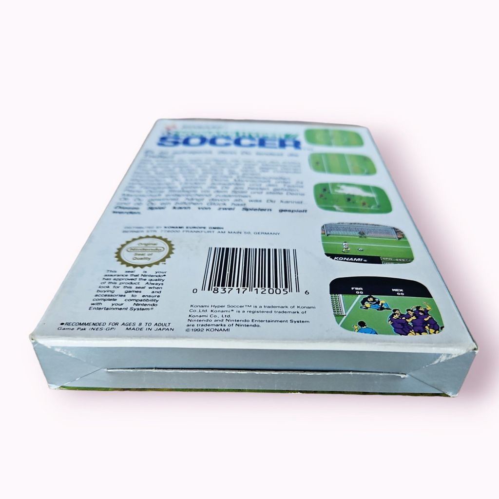 Konami's Hyper Soccer is a soccer game in the Hyper Sports series. This is an action game for one or two players against the computer or each other.