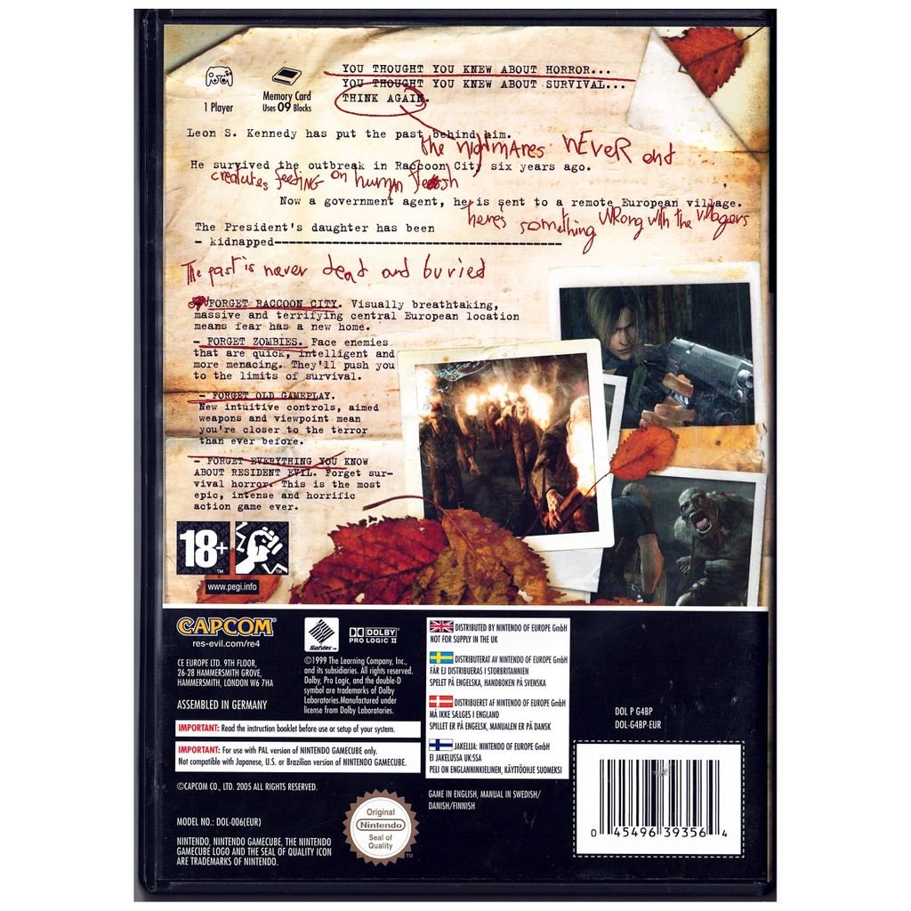 🔥 Följ Leon S. Kennedy på ett farligt uppdrag i en isolerad europeisk by för att rädda presidentens dotter. Möt skrämmande fiender, lös pussel och överlev mot alla odds – allt i en av GameCubes mest hyllade titlar. Den svenska utgåvan gör den extra eftertraktad bland samlare.