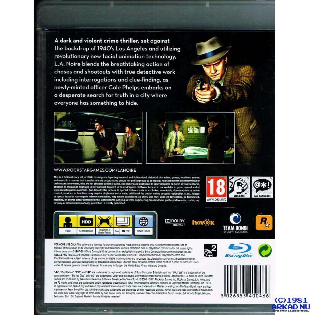 Beskrivning av LA NOIRE PS3
