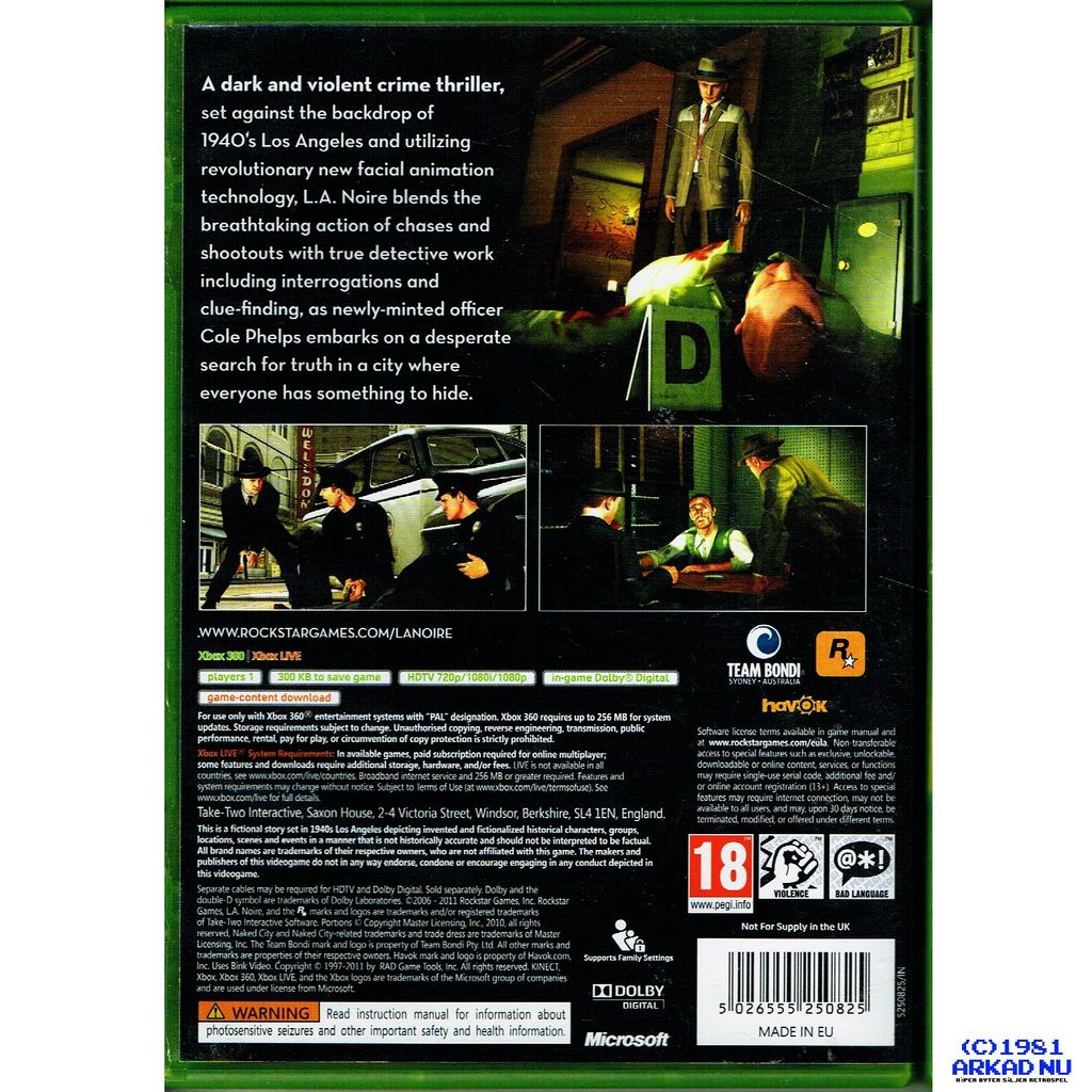 Beskrivning av LA NOIRE XBOX 360