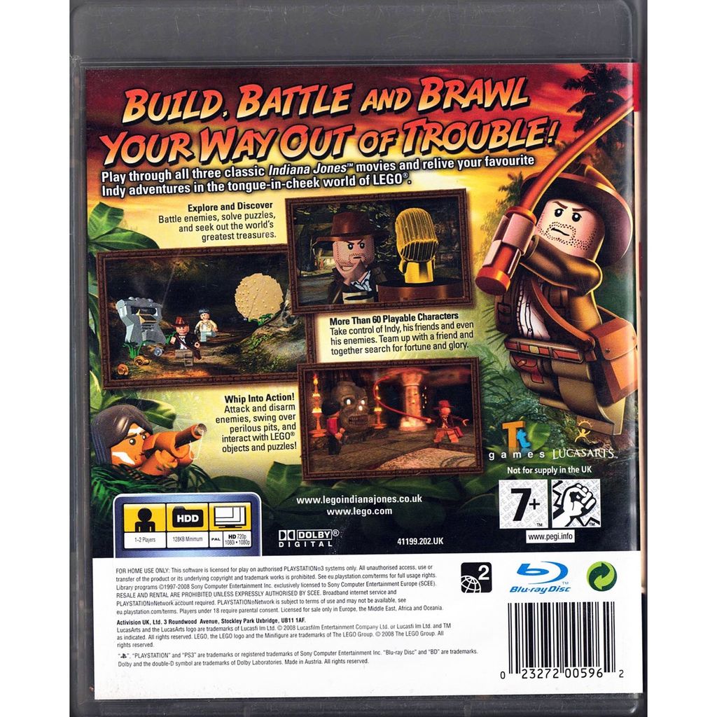 Upplev spänningen i Raiders of the Lost Ark, Temple of Doom och The Last Crusade – fast i härligt humoristisk LEGO-form! Följ med Indy när han svingar sin piska, flyr från rullande stenblock och jagar heliga skatter i denna actionpackade plattformsklassiker.