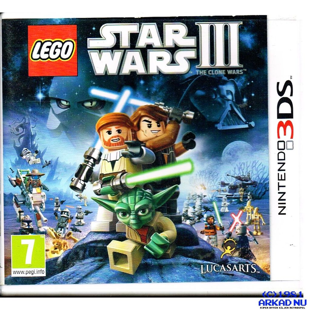 Lego Star Wars III: The Clone Wars is a Lego-themed action-adventure video game based on The Clone Wars animated series, developed by Traveller's Tales and published by LucasArts, released in March 2011 for the PlayStation 3, PlayStation Portable, Xbox 360, Wii, Nintendo DS, Microsoft Windows and Nintendo 3DS consoles. Lego Star Wars III features missions and characters from the Clone Wars television series, as well as favourite characters from the original Star Wars saga, in both single-player and multiplayer gameplay modes The Mac OS X version of the game has been released by Feral Interactive