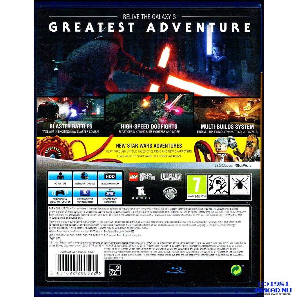 In LEGO Star Wars: The Force Awakens, players relive the epic action from the blockbuster film Star Wars: The Force Awakens, retold through the clever and witty LEGO lens. The game will also feature exclusive playable content that bridges the story gap between Star Wars Episode VI: Return of the Jedi and Star Wars: The Force Awakens.