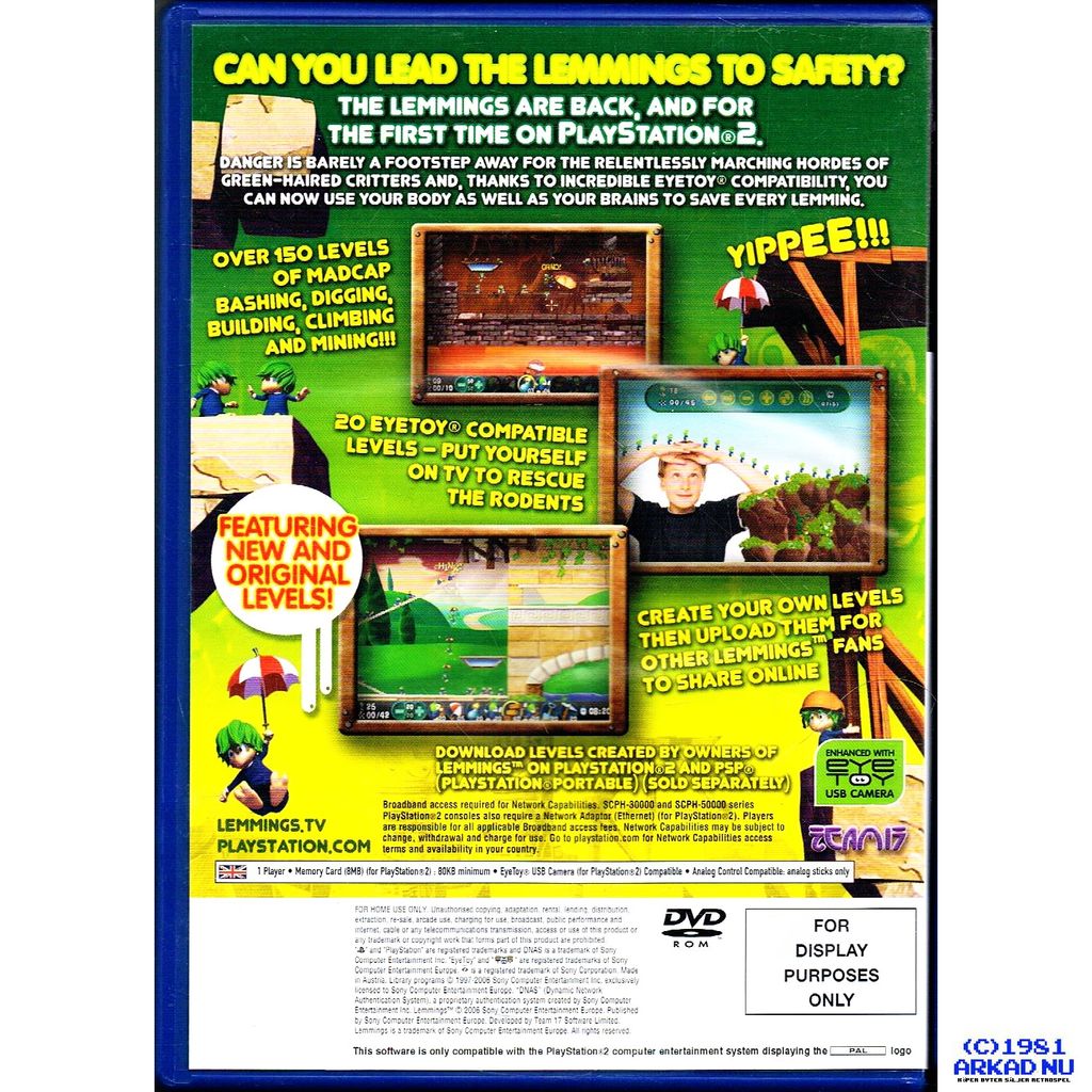 In October 2006 the game was ported by developer Rusty Nutz for the PlayStation 2 with use of the EyeToy. The basic change in the concept is that the player must stretch and use his/her limbs in the recorded picture to aid the lemmings. In 2007, Team17 produced a similar remake of Lemmings for the Sony PlayStation 3 for download through the PlayStation Network. The game had the similar graphical improvements as the PSP title, as well as on-line scoreboards and additional levels developed for high-definition display, but lacked the ability to create and share levels as the PSP version offered.