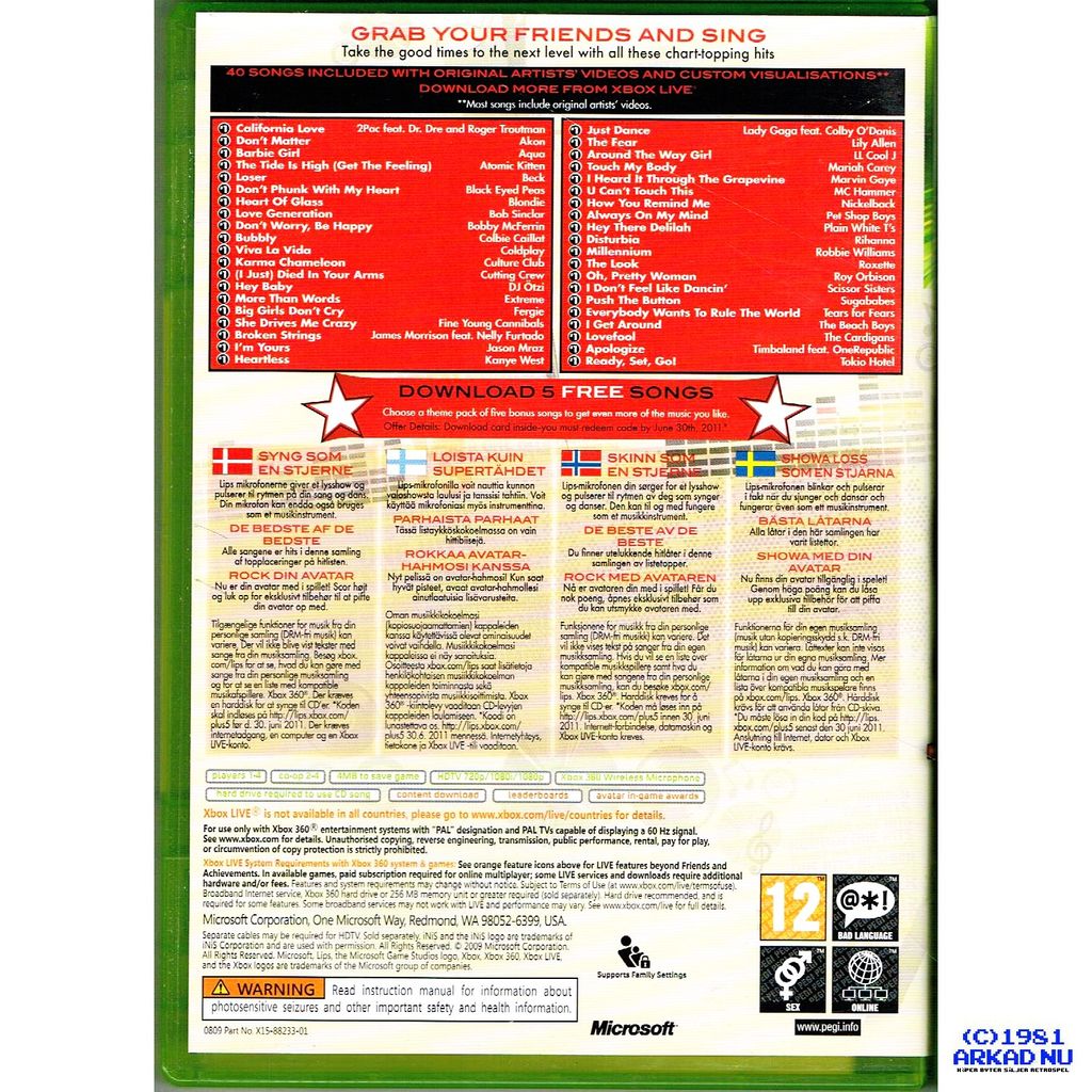 LIPS NUMBER ONE HITS XBOX 360