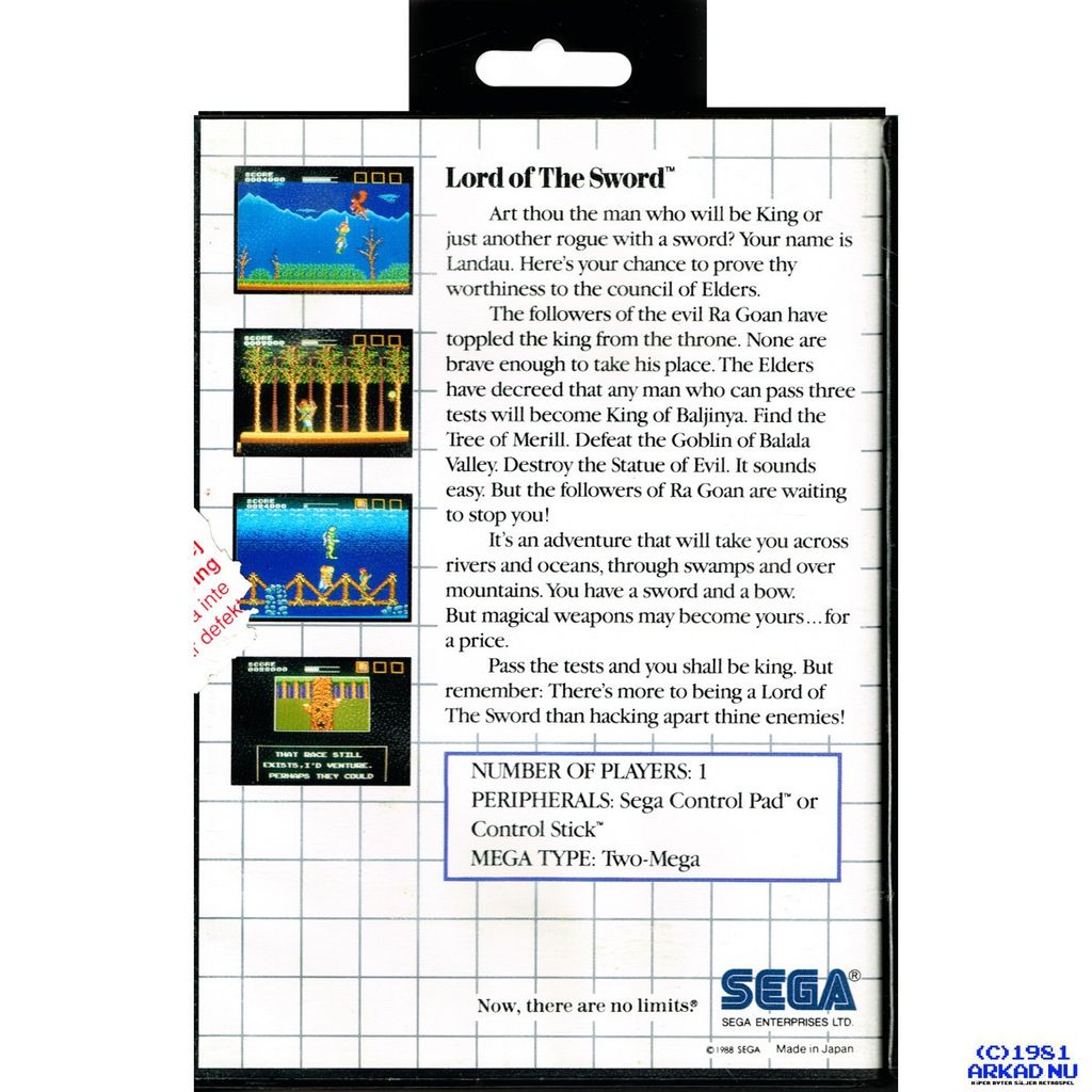Beskrivning av LORD OF THE SWORD MASTERSYSTEM
