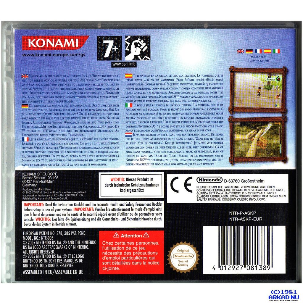 Strandsatt på en öde ö måste man göra allt för att överleva. Lost in blue är ett mycket strategiskt spel med små inslag av rollspel. Det gäller att noggrant planera så att man har tillräckligt med mat och vatten. Spelet utnyttjar "nintendo ds" många funktioner, för att göra upp eld måste man till exempel blåsa i mikrofonen när det börjat glöda för att det ska börja brinna. Alltefter spelets gång upptäcker man nya delar av ön och möter nya utmaningar.