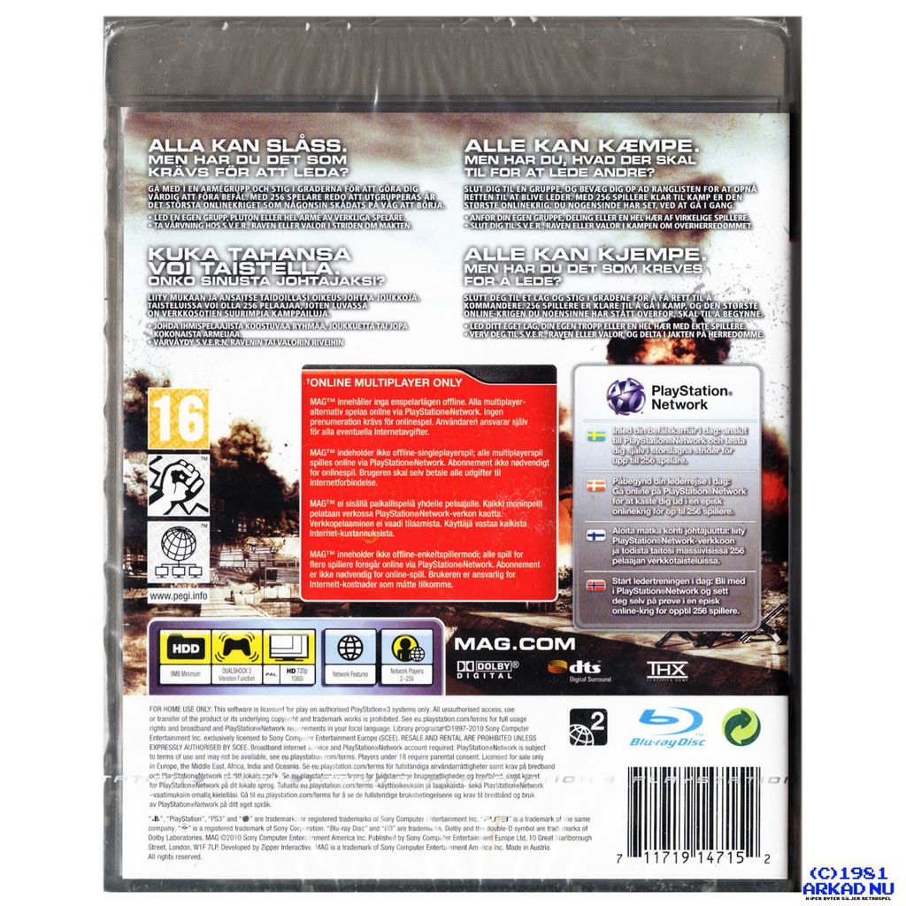 MAG, previously titled MAG: Massive Action Game,was an online multiplayer-only first-person shooter video game developed by Zipper Interactive for the PlayStation 3. The game was announced at Sony's E3 2008 press conference. Various subtitles were being considered for the game, including MAG: Shadow War, MAG: Zero, MAG: Global Assault and MAG: Final Hour.[ The game was released in North America on January 26, 2010, mainland Europe on January 27 and the United Kingdom on January 29. It was released in Australia and New Zealand on February 11, 2010. MAG received an award from Guinness World Records as "Most Players in a Console FPS" with 256 players.