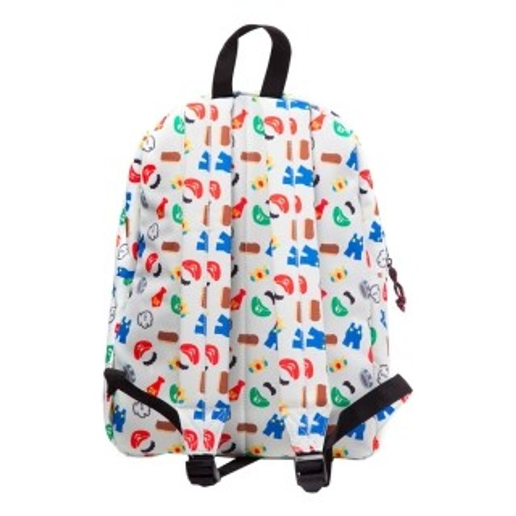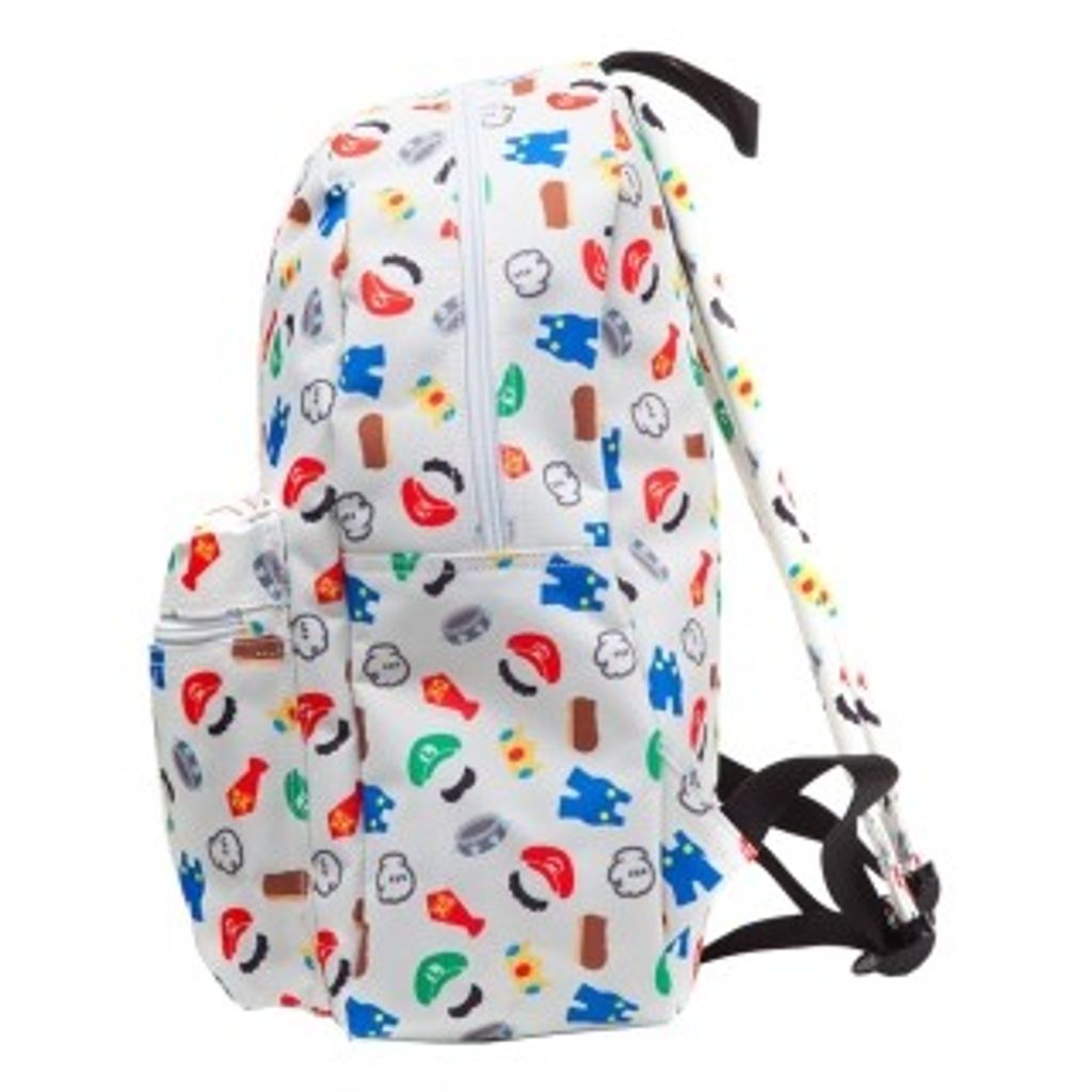 Mario och Luigi Ryggsäck är en vit ryggsäck av kraftigt textilmaterial tryckt med Mario och Luigi samt flera roliga symboler föreställandes bland annat deras