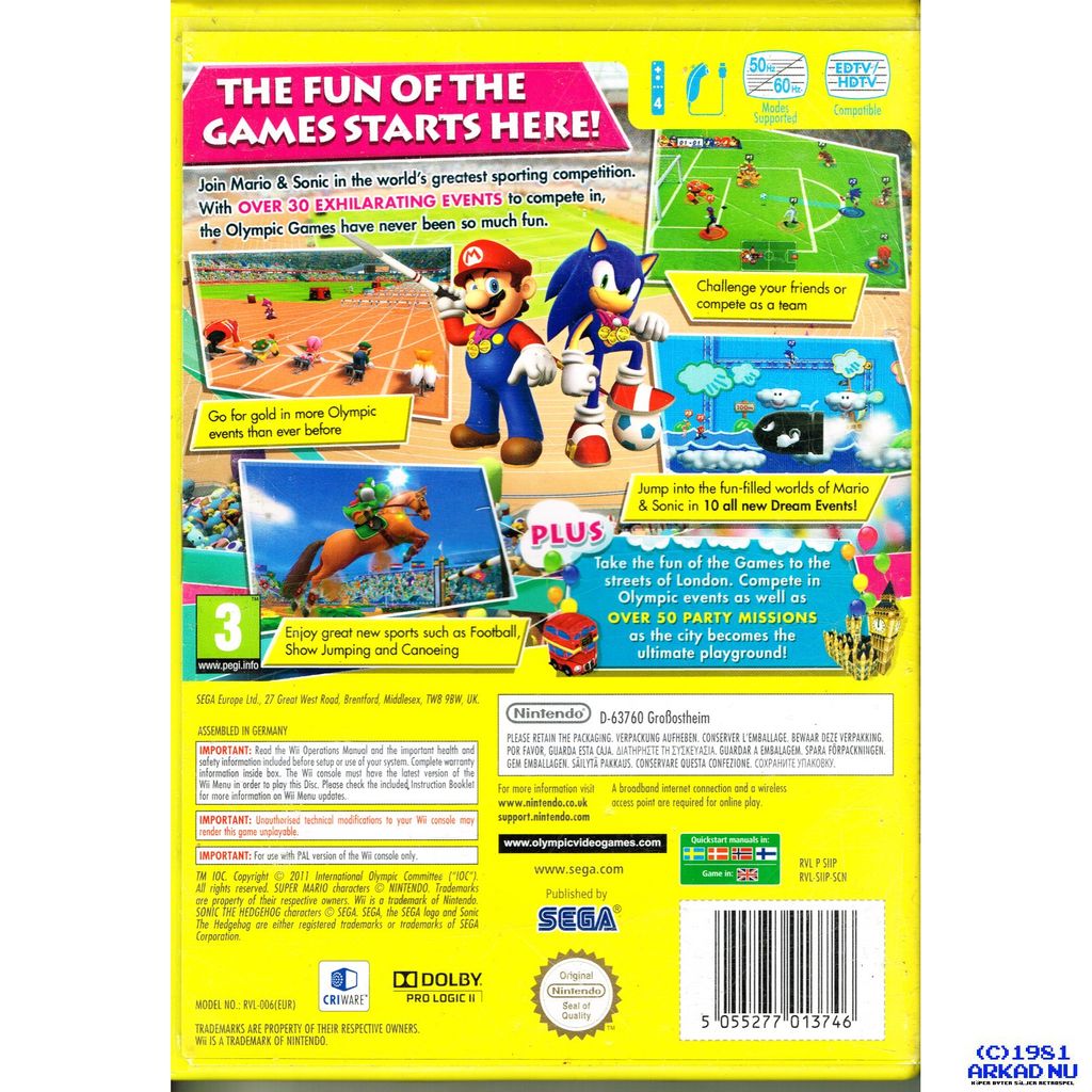 MARIO & SONIC AT THE LONDON 2012 OLYMPIC GAMES WII - RVL-SIIP-SCN