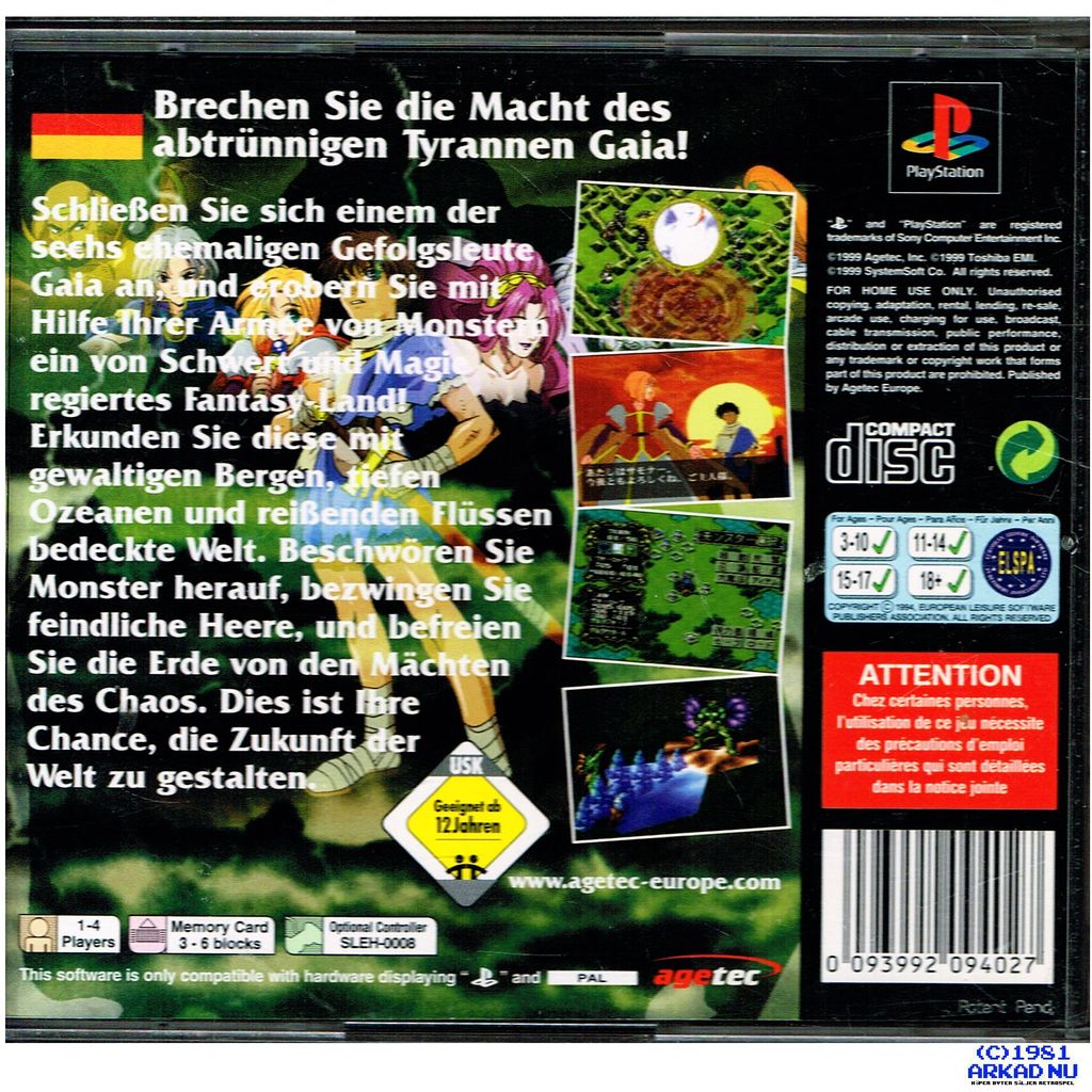 MASTER OF MONSTERS DISCIPLES OF GAIA PS1 - TYSK UTGÅVA, SPELET ÄR PÅ ENGELSKA - SLES-00244