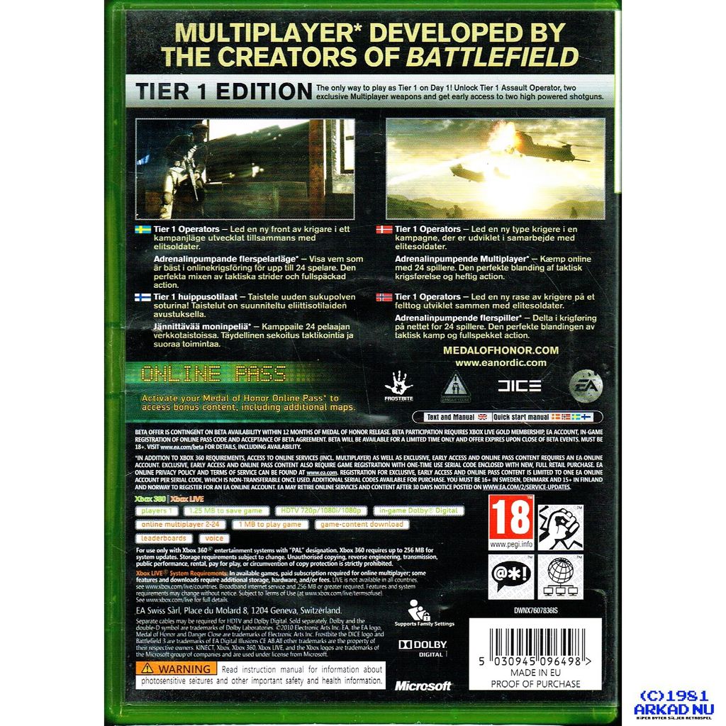 Beskrivning av MEDAL OF HONOR TIER 1 EDITION XBOX 360 MEDAL OF HONOR TIER 1 EDITION XBOX 360 - DWNX7607836IS KOMPLETT I BOX
