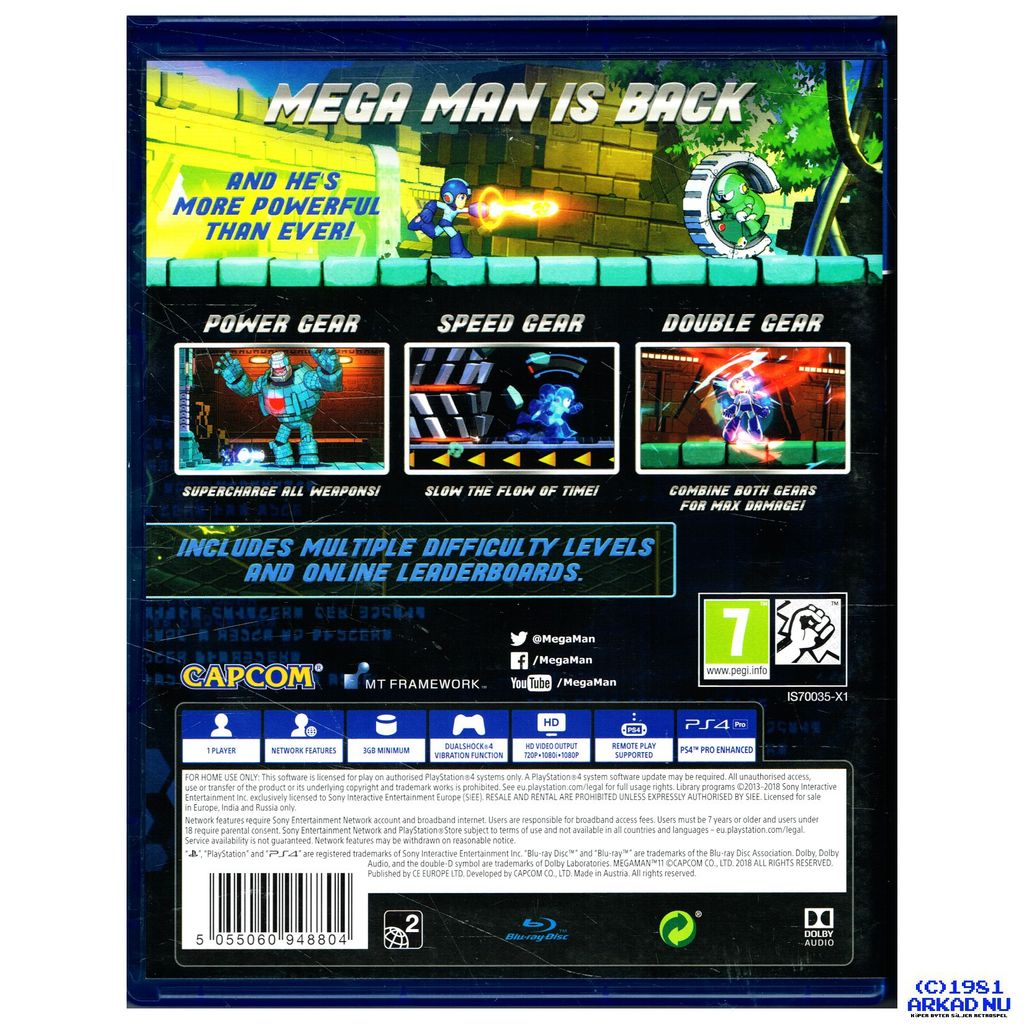 För att rädda dagen måste den blå bombplanen slåss mot Robot Masters och ta sina kraftfulla vapen för sig själv, vilket nu förändrar hjältens utseende med nya detaljer. Det innovativa nya Double Gear -systemet låter dig öka Mega Mans hastighet och kraft för en ny twist på det tillfredsställande spel som serien är känd för.