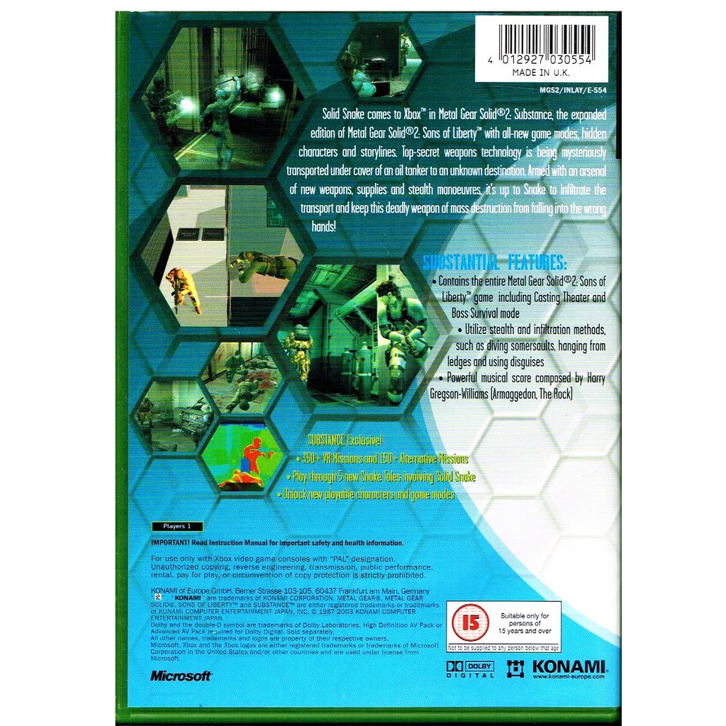 METAL GEAR SOLID 2 SUBSTANCE XBOX
