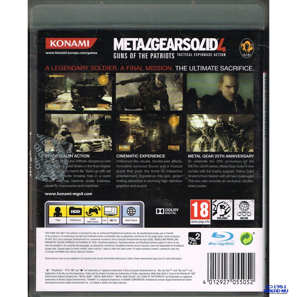 Beskrivning av METAL GEAR SOLID 4 GUNS OF THE PATRIOTS 25TH ANNIVERSARY EDITION PS3