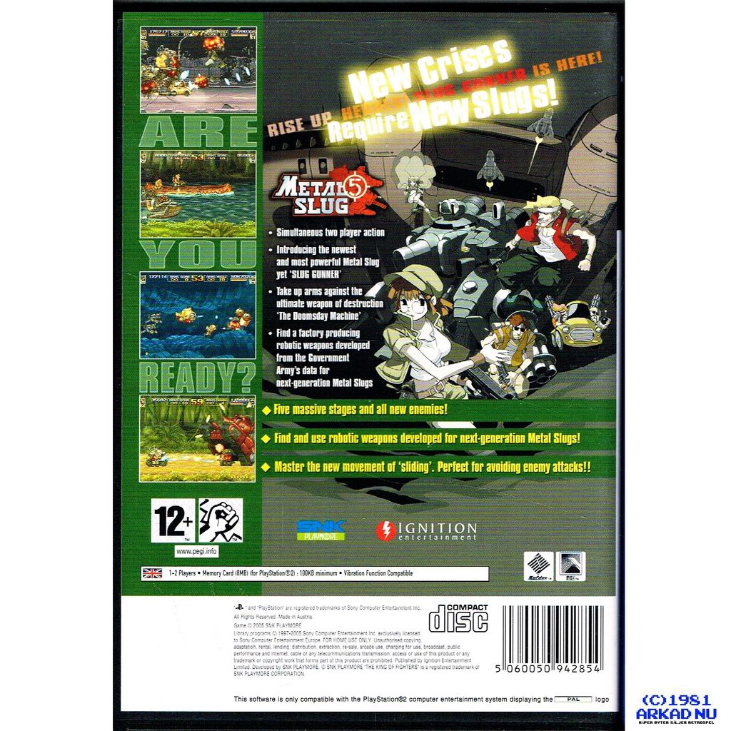 Metal Slug 5 is a run and gun video game for the Neo-Geo console/arcade platform created by SNK Playmore. It was released in 2003 for the MVS arcade platform, is the fifth game in the Metal Slug series, and was one of the last games for the Neo Geo system. The game was developed by Noise Factory/SNK Playmore, after Korean company Mega Enterprise had directed Metal Slug 4.
