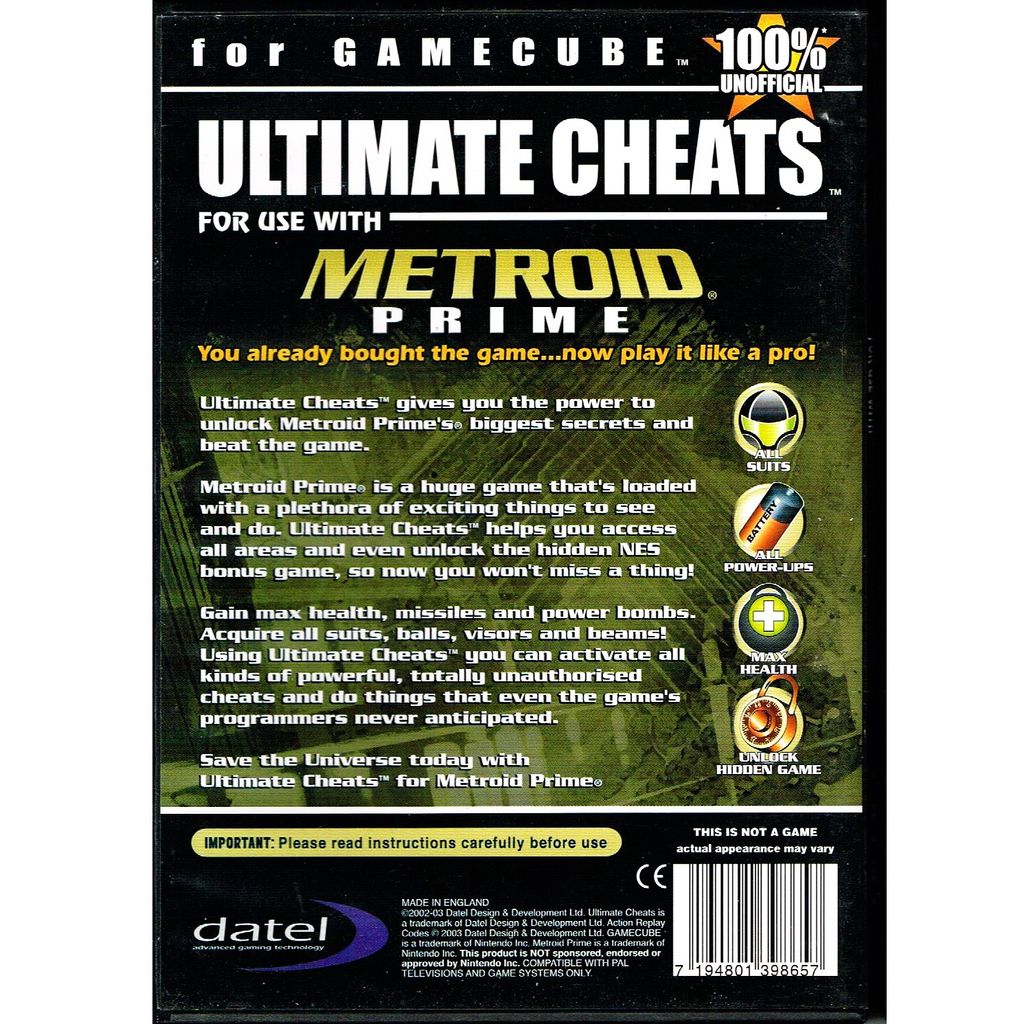 Beskrivning av METROID ULTIMATE CHEATS GAMECUBE METROID ULTIMATE CHEATS GAMECUBE FUSK SKIVA FÖR METROID PRIME PÅ GAMECUBE