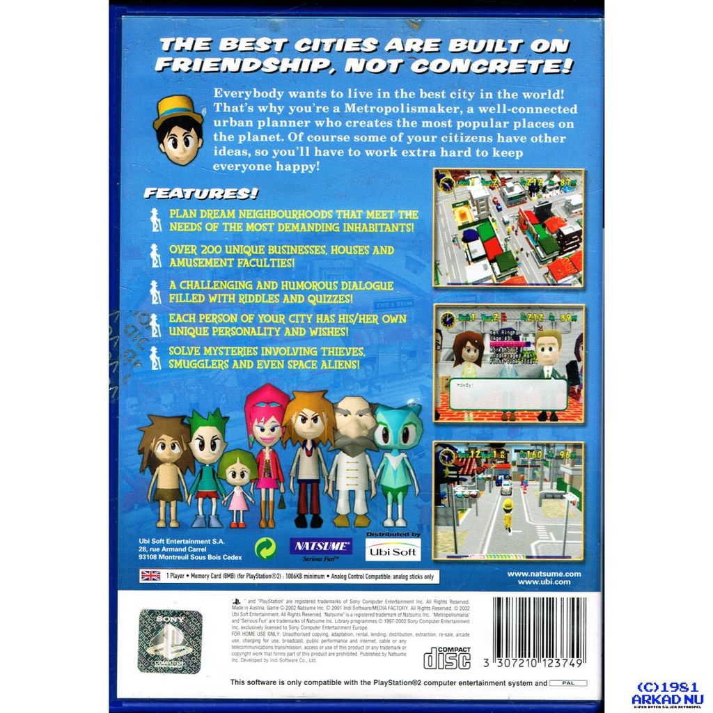 Metropolismania (known in Japan as Machi-ing Maker) is a PlayStation 2-only city-building game developed by Indi. The object of the game is to interact with NPCs in order to populate various towns. A sequel was announced by Natsume, titled Metropolismania 2 (Machi-ing Maker 2: Zoku Boku no Machi Zukuri in Japan). The title was released on August 28, 2007 in North America and in Japan on July 13, 2006 by D3 Publisher. Another sequel, Metropolismania 3, was released for the PlayStation Portable by D3 Publisher but in Japan only. Several titles under the name "Machi-Ing maker" have also been published for the Nintendo DS and the PlayStation 3.