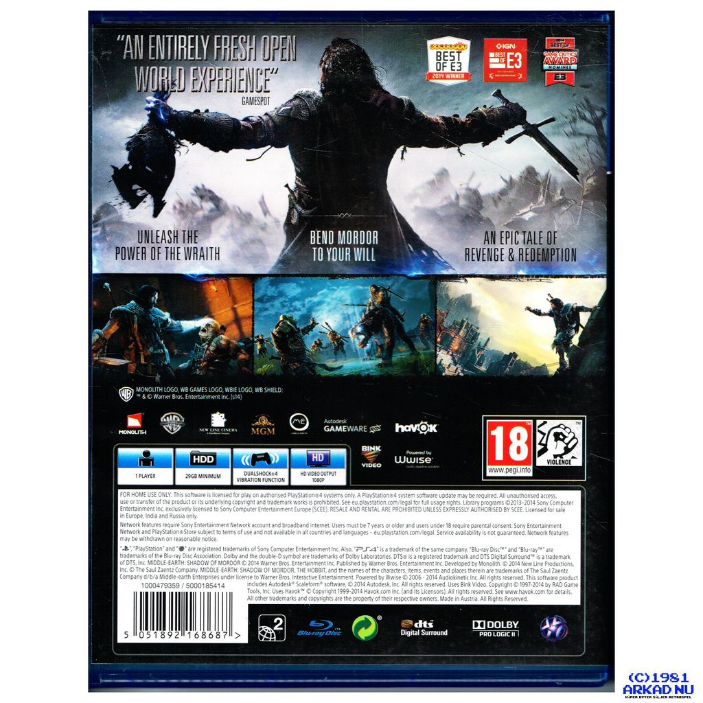 Beskrivning av MIDDLE-EARTH SHADOW OF MORDOR PS4