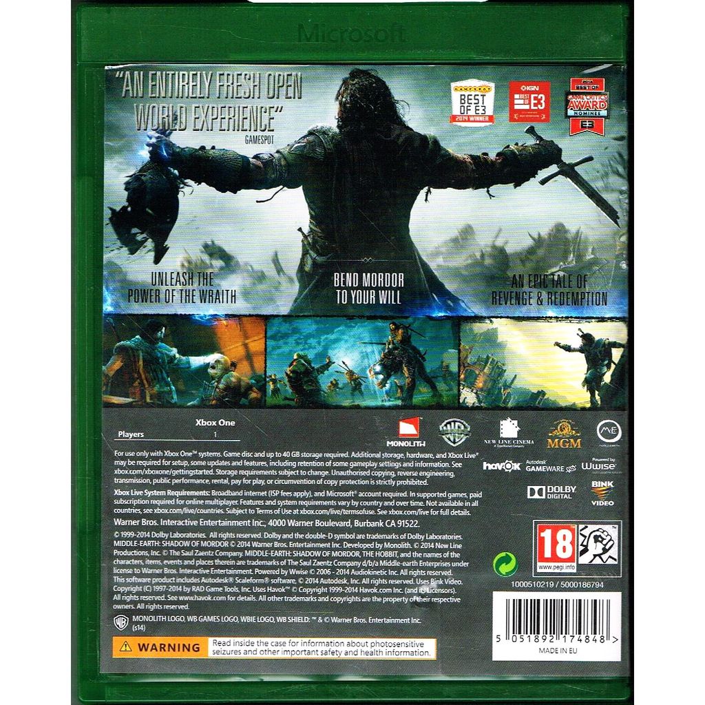 MIDDLE-EARTH SHADOW OF MORDOR XBOX ONE - 921-74848