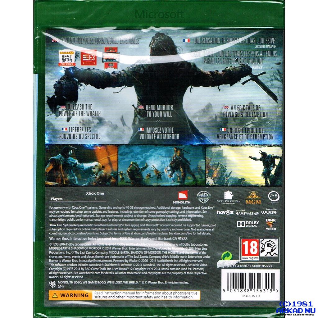 Beskrivning av MIDDLE-EARTH SHADOW OF MORDOR XBOX ONE