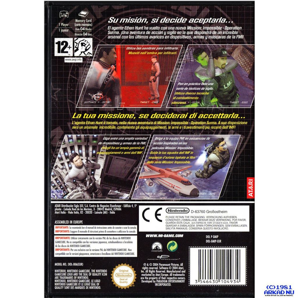 Beskrivning av MISSION IMPOSSIBLE M:I OPERATION SURMA GAMECUBE ITALIENSK