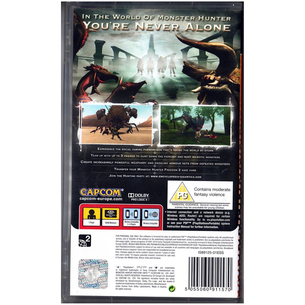 Gör dig redo för det största Monster Hunter-äventyret på PSP! Utforska gigantiska områden, jaga enorma bestar och skapa kraftfull utrustning tillsammans med vänner i co-op. Med hundratals uppdrag, vapen och rustningar är detta ett måste för alla action-RPG-fans!
