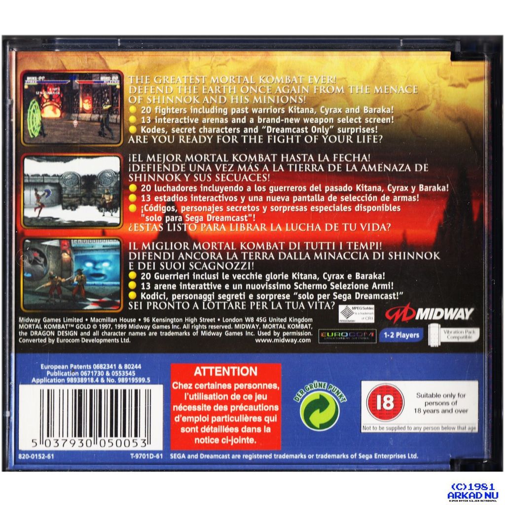 Beskrivning av MORTAL KOMBAT GOLD DREAMCAST