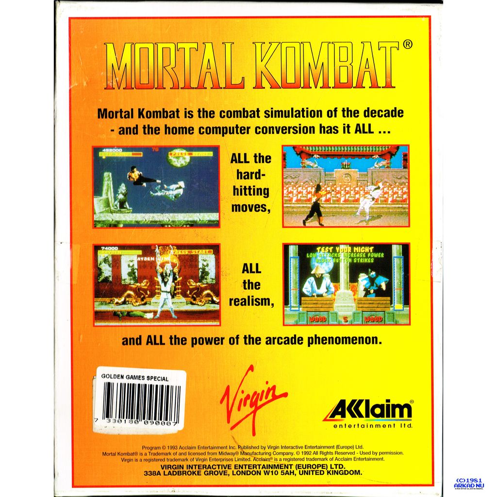 Beskrivning av MORTAL KOMBAT PC BIGBOX 3.5" DISK GOLDEN GAMES