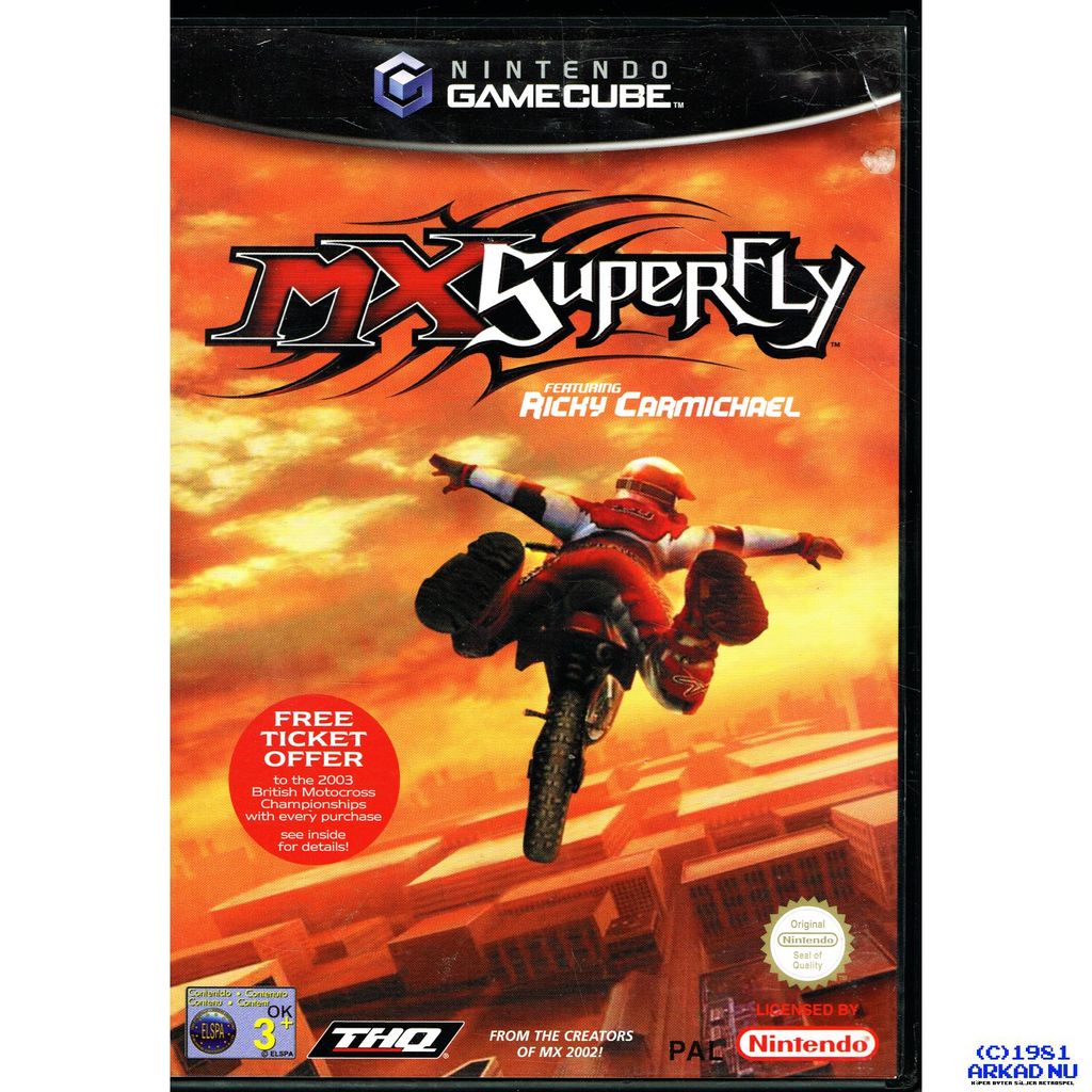MX Superfly featuring Ricky Carmichael, released as MX Super Fly in PAL regions, is a motorcross racing game developed by Pacific Coast Power & Light and published by THQ for the Xbox, PlayStation 2, and Nintendo GameCube