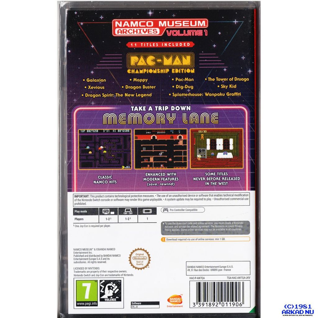 NAMCO MUSEUM ARCHIVES VOLUME 1 SWITCH NEDLADDNINGSKOD - TSA-HAC-AW70A-UKV