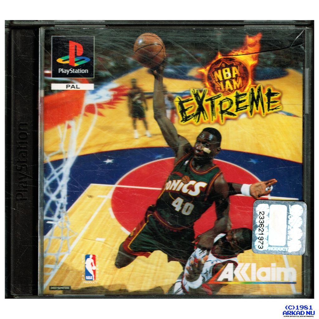 NBA Jam Extreme is a 1996 basketball arcade game by Acclaim Entertainment based on the 1996–97 NBA season. After Midway Games released two NBA Jam games, Acclaim, the publisher of the home versions of NBA Jam, ended up winning the exclusive rights to use the Jam name. NBA Jam Extreme was the first Jam game from Acclaim, as well as the first edition of the game to use 3D graphics.In contrast, Midway's competing NBA game NBA Hangtime featured 2-D visuals similar to the previous Jam games. Extreme also features longtime sports broadcaster Marv Albert doing commentary instead of original commentator Tim Kitzrow. New to the game is the "Extreme" button, essentially a super version of the series' trademark "Turbo" button.The cover features Shawn Kemp of the Seattle SuperSonics, and Hakeem Olajuwon of the Houston Rockets.