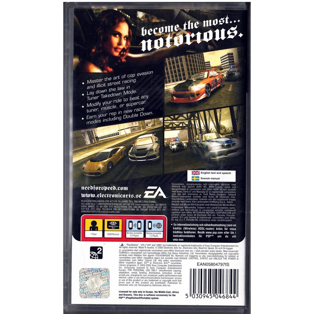 Beskrivning av NEED FOR SPEED MOST WANTED 5-1-0 PSP