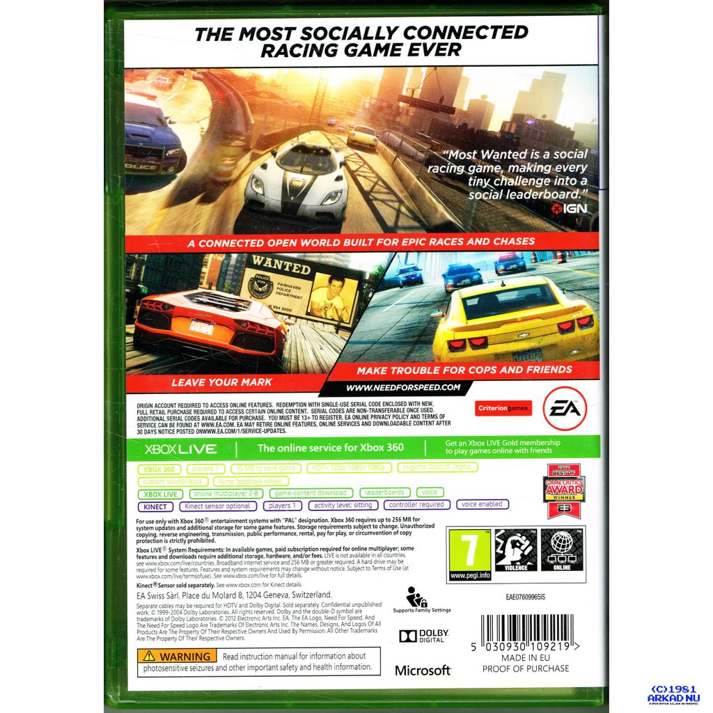 Beskrivning av NEED FOR SPEED MOST WANTED XBOX 360