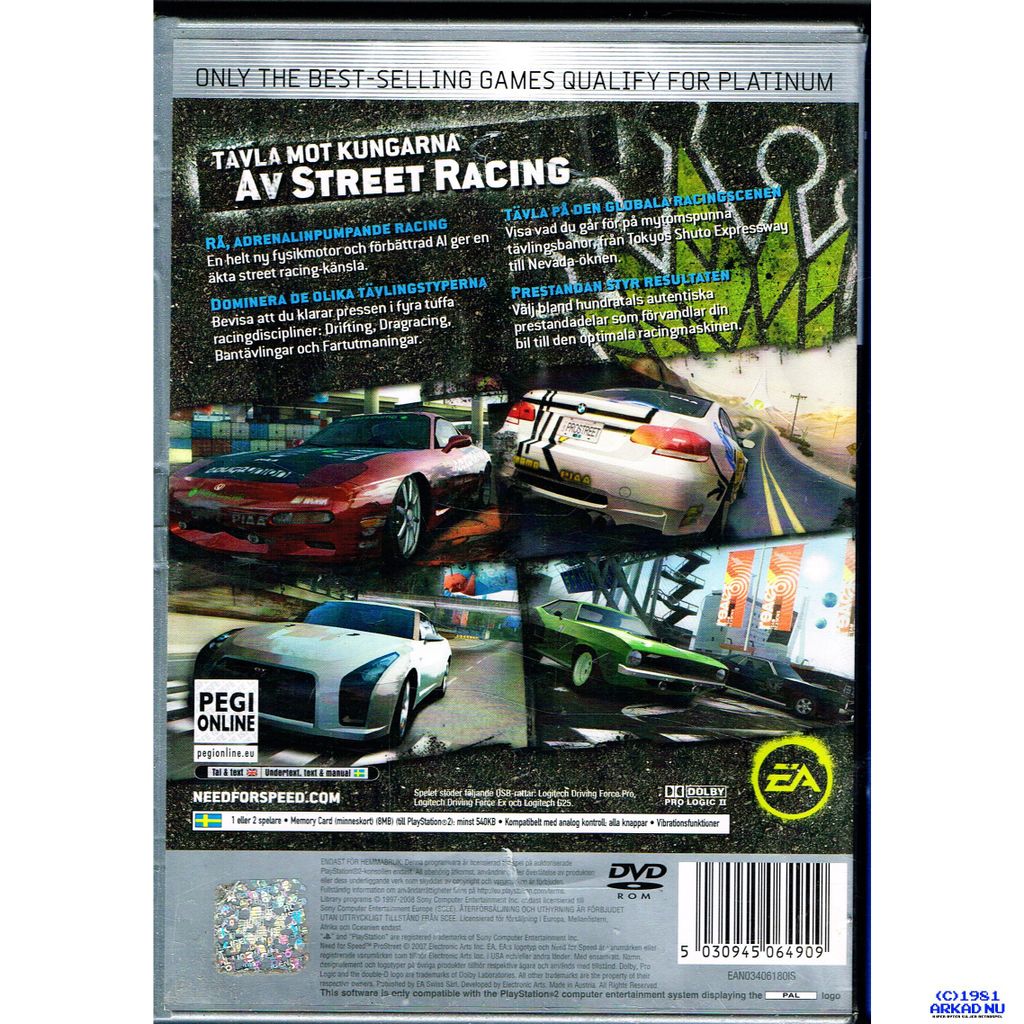 NEED FOR SPEED PROSTREET PS2 PLATINUM SVENSK TEXT I SPELET - SLES-55005