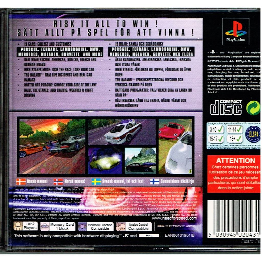 It is the fourth game in the Need for Speed series, once again featuring a host of exotic sport cars and tracks located in Western Europe and North America. High Stakes is particularly notable within the series for being the first installment to include a vehicle damage model and a genre-standard "career" system.