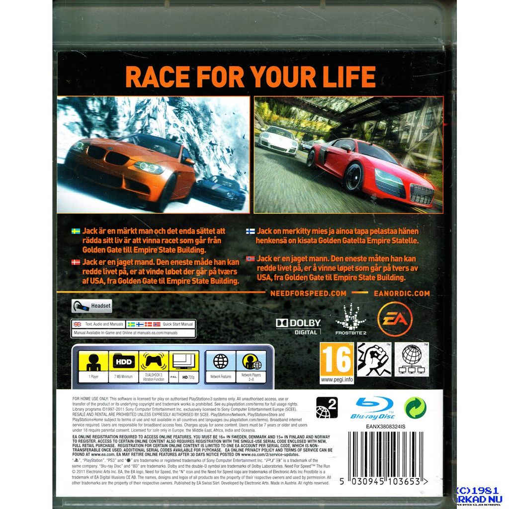 Beskrivning av NEED FOR SPEED THE RUN PS3