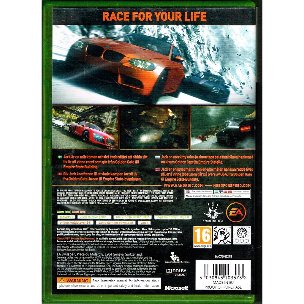 Beskrivning av NEED FOR SPEED THE RUN XBOX 360