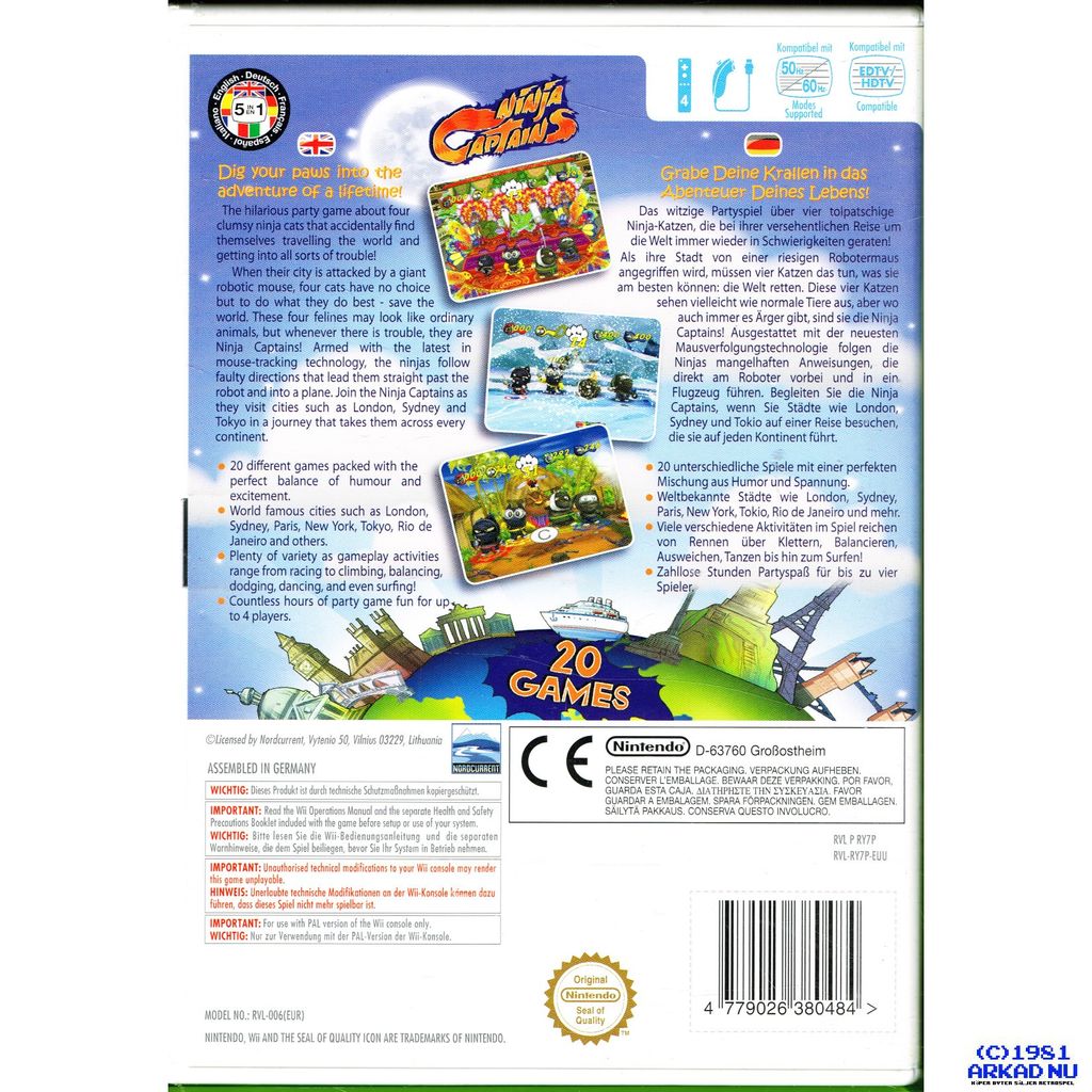 Ninja Captains features 20 unique action-packed games set in exotic locations all over the world. Up to 4 players can join in as the Ninja Captains try to save the world, one city at a time! Ninja Captains will test your speed, timing and coordination through a series of zany challenges that include rock climbing in Australia, ice fishing in Sweden, and serving food to hungry customers in Berlin. Learn the secret art of travel firsthand and embark upon a single or multiplayer adventure that is sure to be a hit with friends and family!