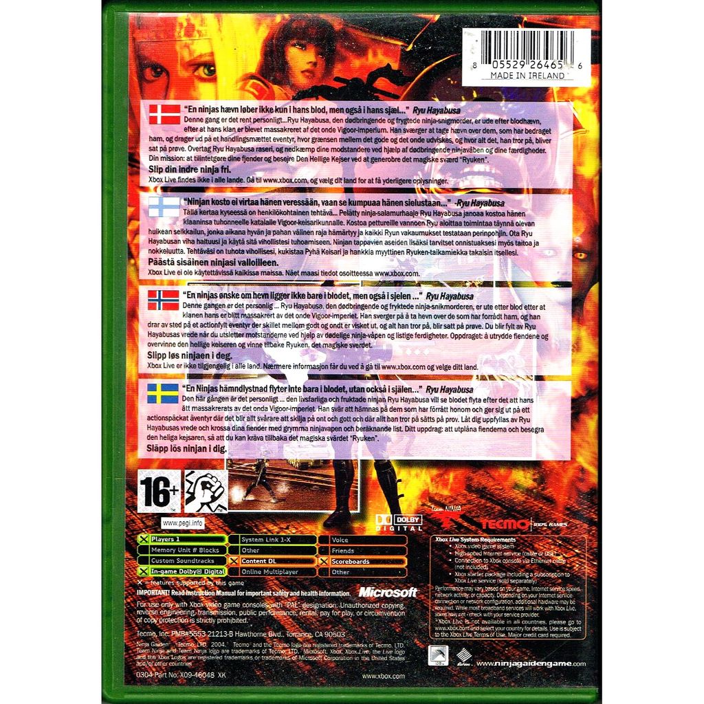 Beskrivning av NINJA GAIDEN XBOX