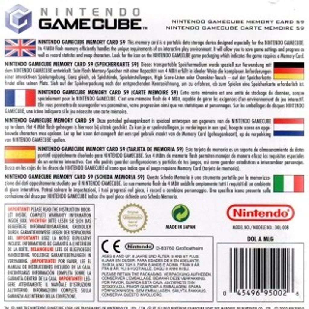Beskrivning av NINTENDO GAMECUBE MEMORY CARD 59 NINTENDO GAMECUBE MEMORY CARD 59 - GB-DOL-A KOMPLETT I BOX
