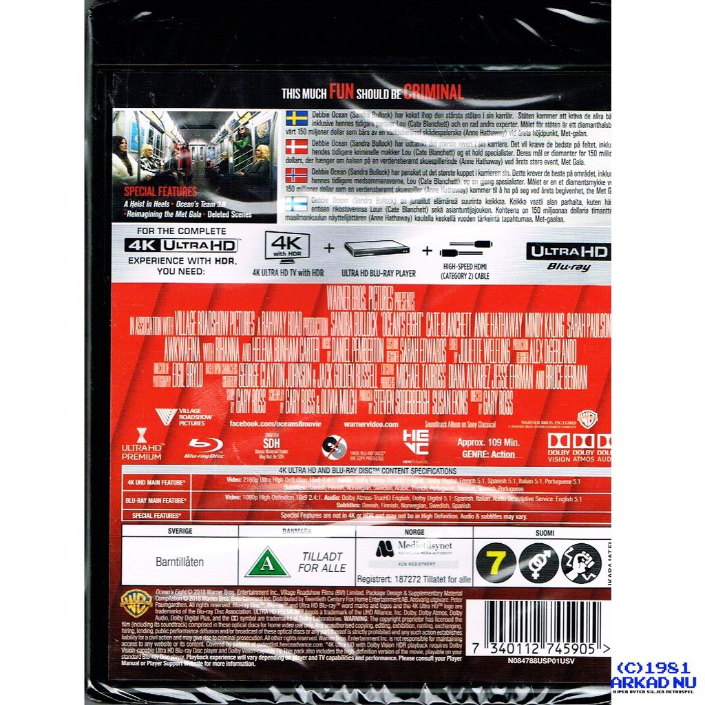 OCEANS 8 4K ULTRA HD + BLU-RAY - N084788USP01