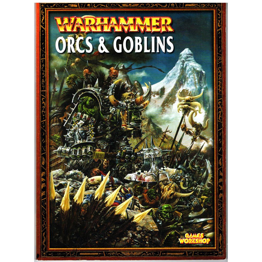 Orcs & Goblins is a supplemental book for the Warhammer Fantasy Battle tabletop game. The phrase "orcs & goblins" also refers collectively to all of the races that are described in this book, which includes other "greenskins" as well. The book includes background information, illustrations, and game rules for these races. The Orcs and Goblins represent a generic Dark Ages warband army with little internal cohesion and discipline, and relying on the ferocious charge and individual fighting skills rather than organized generalship.