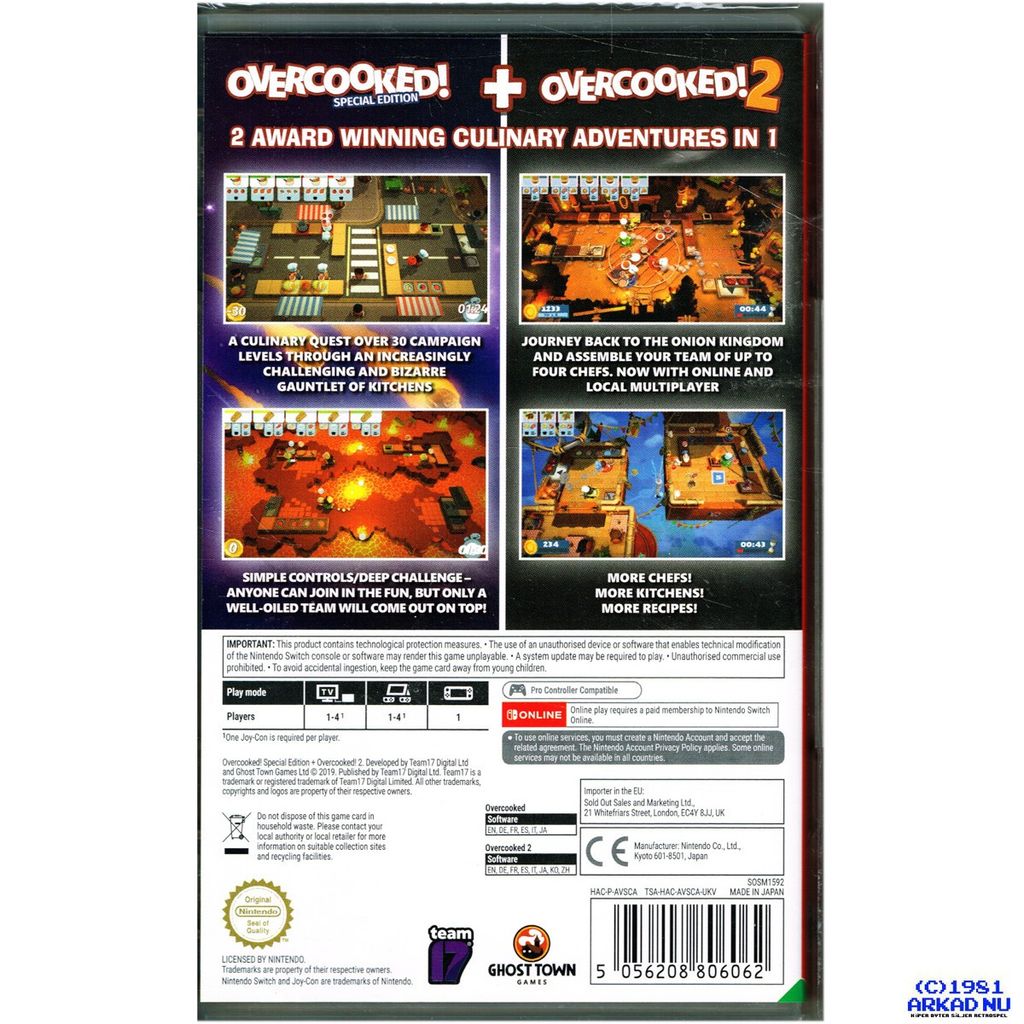 Beskrivning av OVERCOOKED SPECIAL EDITION + OVERCOOKED 2 SWITCH