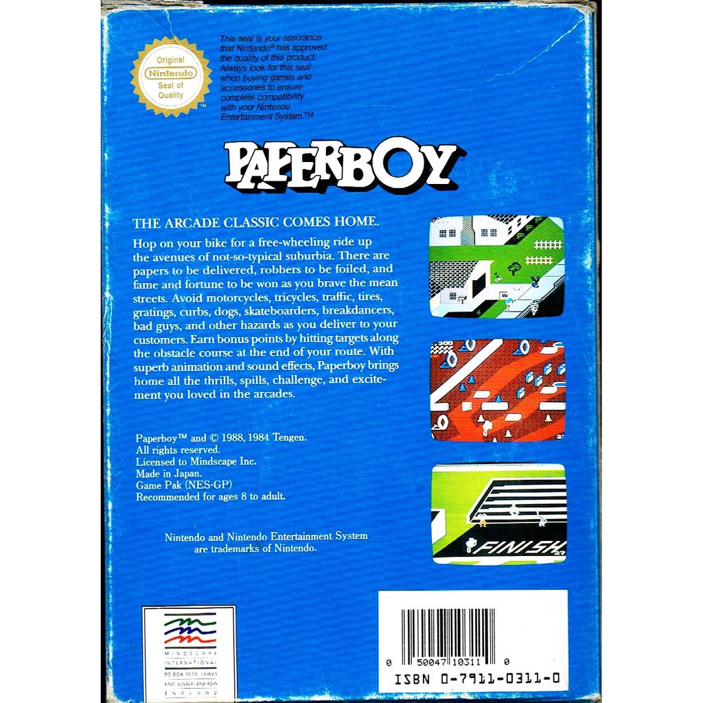Beskrivning av PAPERBOY NES SCN