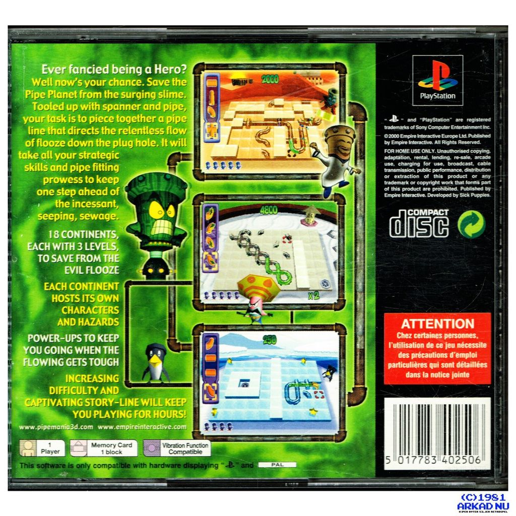 Beskrivning av PIPE MANIA 3D PS1