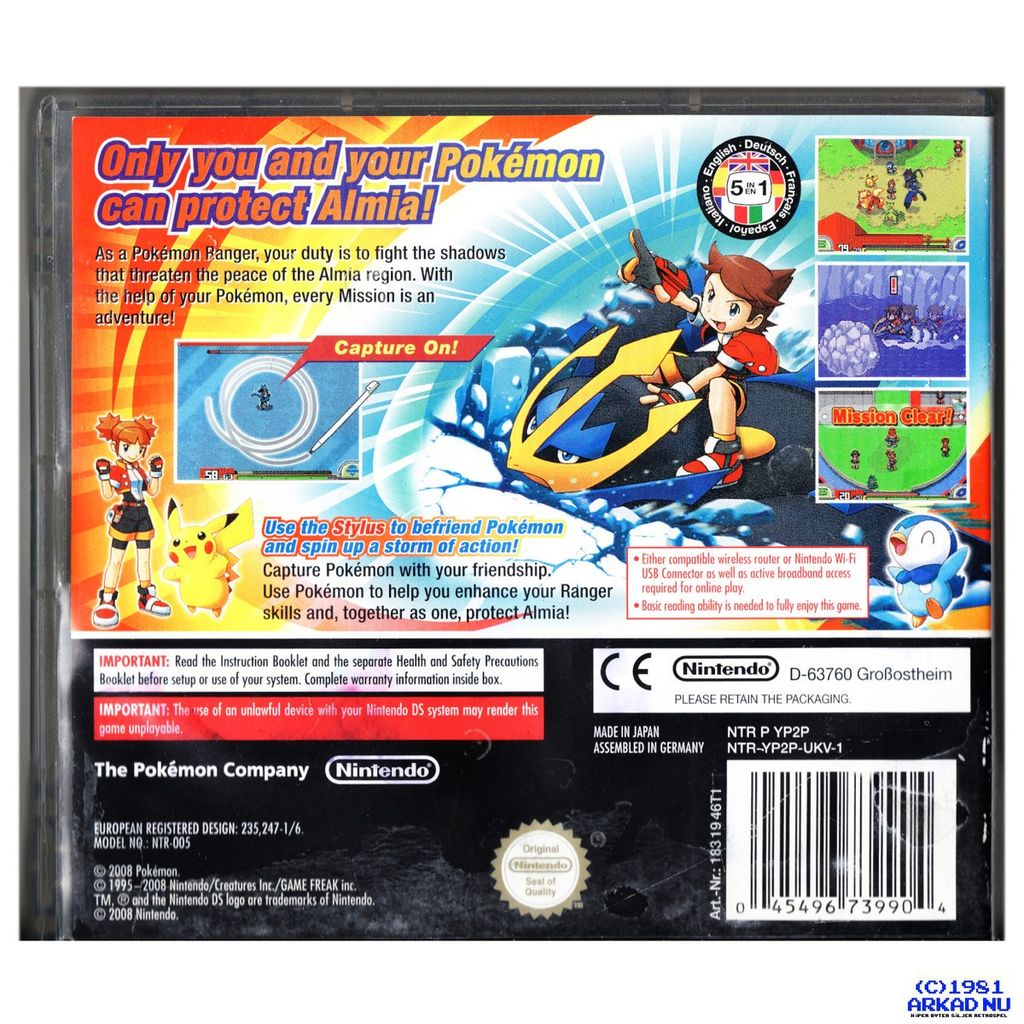 Your journey to become a Top Ranger takes you to the new region of Almia. This game has a larger world, more Missions, more adventure and more to do than the previous Pokémon Ranger game. It has a storyline full of adventure and the ability to travel to and explore many exciting new areas in Almia, including oceans, forests, deserts and more with the help of your Partner Pokémon.