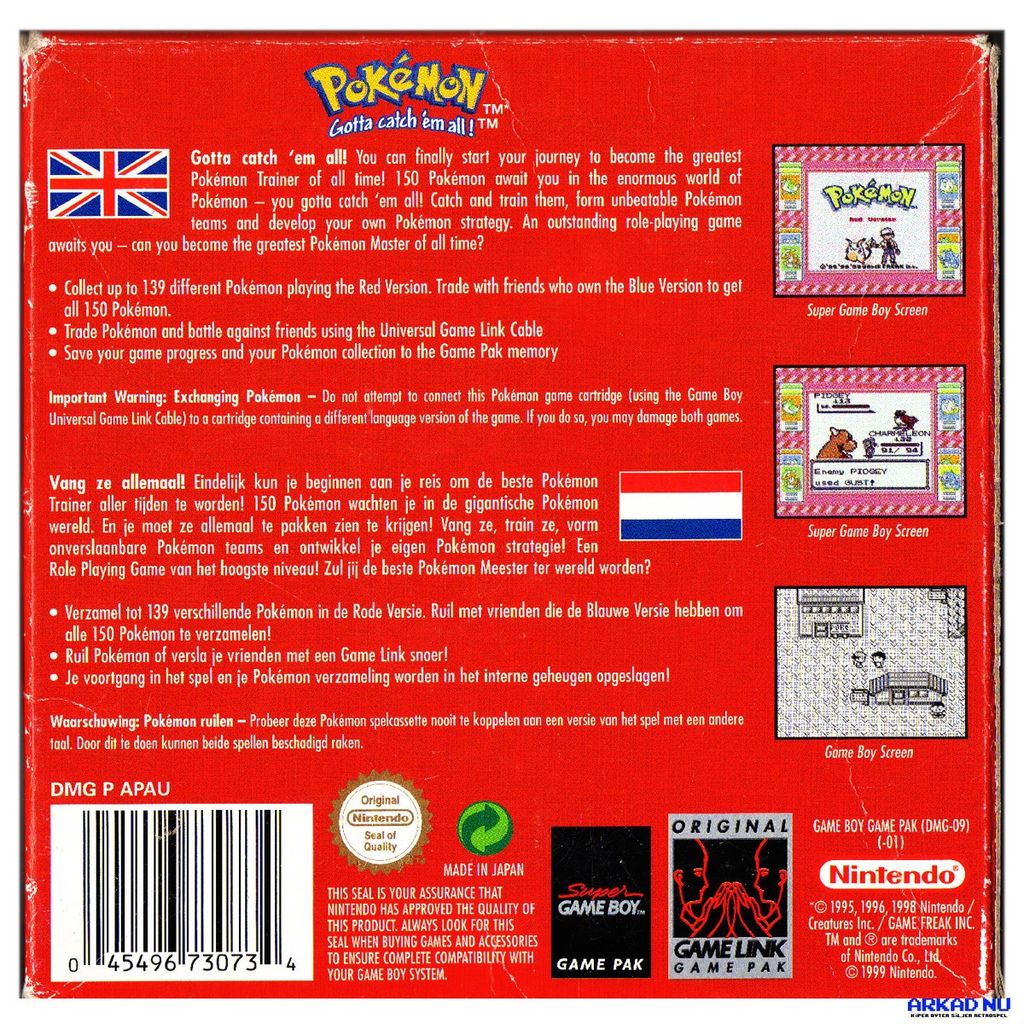 Beskrivning av POKEMON RED GAMEBOY